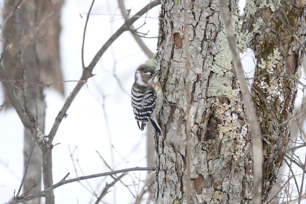 今まで気づきませんでしたがコゲラちゃんには、頭に少し赤い毛があるのですね。赤い毛があるのはオスだそうです。知らなかった・・ちょっと得した気分です。