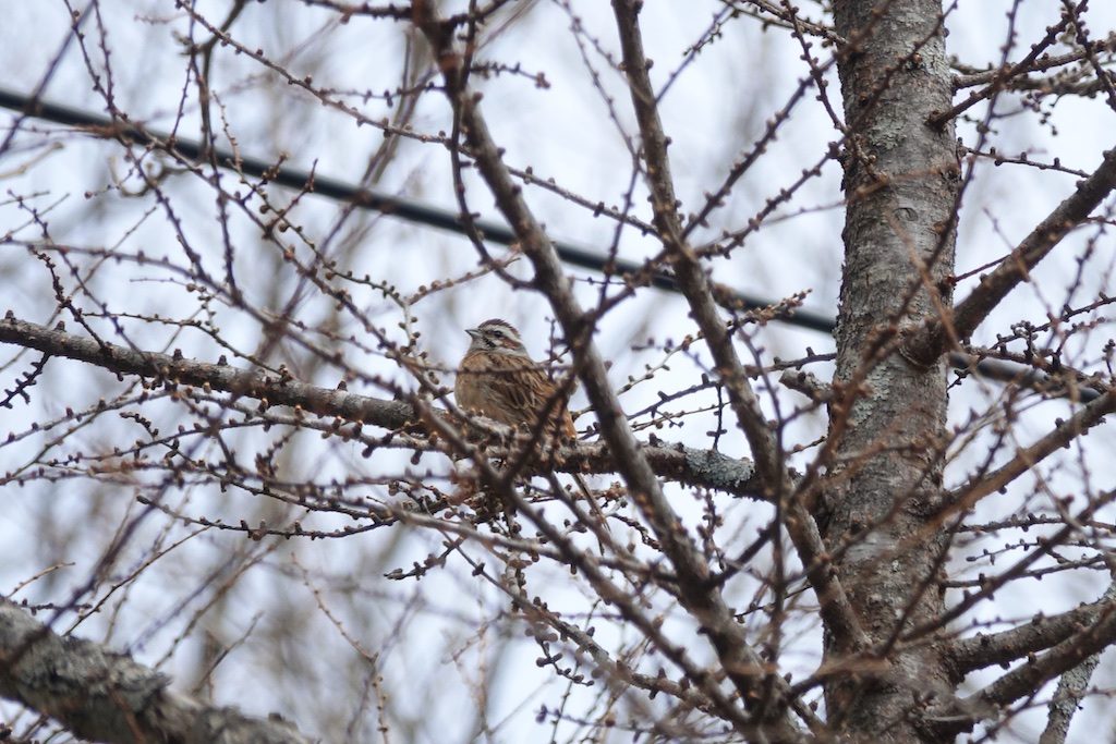 芽吹き前のカラマツに止まっていたまんまるホオジロさん。遠すぎてよくわからなかったのですが、撮影してみたらホオジロさんでした。ここらではあまり見かけないです。