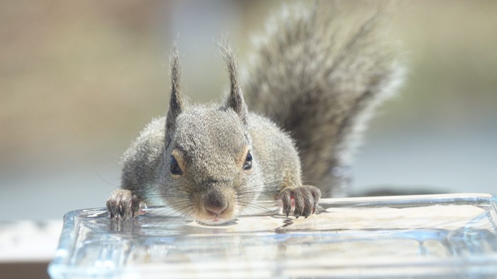 この春から餌と一緒に水も出すようにしています。餌を食べた後クピクピかぶりつきで水を飲むニホンリス。かわいい。