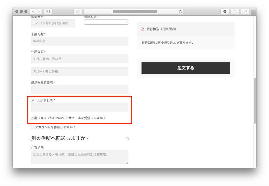 注文画面にメルマガ受信のチェックボックスも追加しておきたい