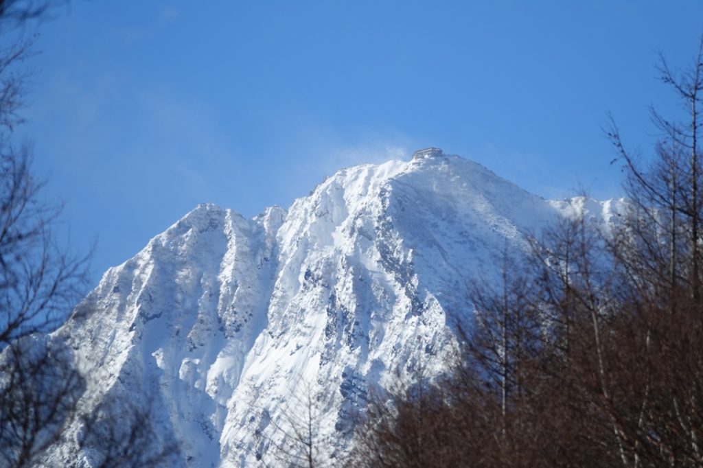 今シーズンは本当に雪が少なく、まだ家の周辺は雪がほとんどありません。それでも八ヶ岳山頂は雪の中。晴れて雪煙が少し上がっているのを麓から見ることができました。