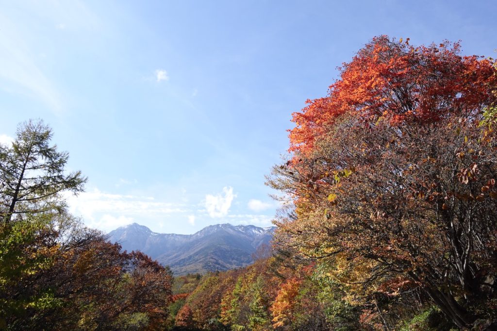 台風19号とその後の雨などですっきりとしない天気が続いていましたが、本日10月23日は久しぶりに気持ちよく晴れました。八ヶ岳の山頂に目をむけると、うっすらと雪が積もっていました。今年2019年の初冠雪のようです。