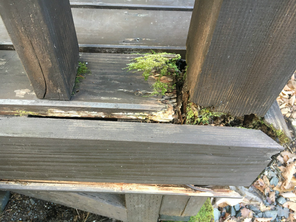 今度は玄関のウッドデッキが壊れそう・・