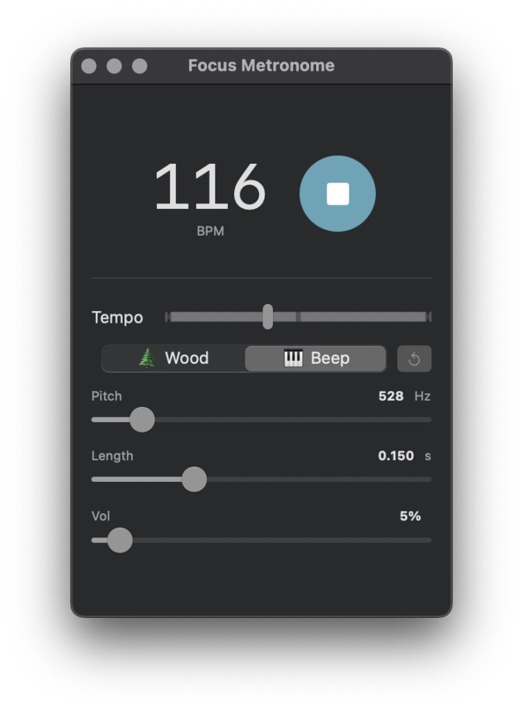 - 116BPMのリズムが集中力を上げるらしいので、それを延々流せるシンプルなメトロノームアプリをつくってくれますか?