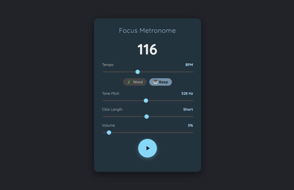- 116BPMのリズムが集中力を上げるらしいので、それを延々流せるシンプルなメトロノームアプリをつくってくれますか?